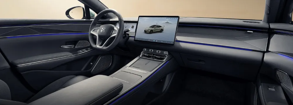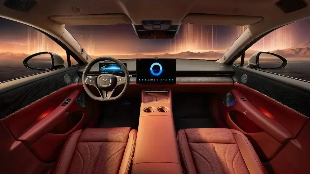 内饰设计以“山海同光”为核心理念,车内采用大面积软性皮质与实木饰板包覆,高频接触区域实现100%软包,顶棚采用超纤绒材质。16.1英寸3K悬浮式中控屏成为视觉焦点,配合10.25英寸液晶仪表和39英寸AR-HUD抬头显示,构成多层次信息交互系统。