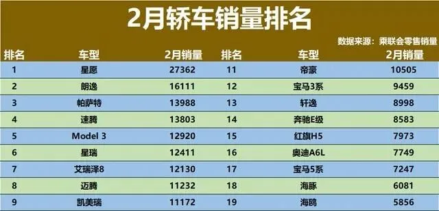 二月份的轿车市场,说真的,挺有意思的。虽然大家都在说车市现在处于调整期,买车的人好像没以前那么冲动了,但仔细瞅瞅这销量榜,热闹劲儿一点没少。最让人眼前一亮的,绝对是吉利星愿这匹黑马,一下子卖了快两万八千辆,直接把冠军奖杯捧回家了。你想想,以前这位置不是合资就是特斯拉,现在咱们国产小车硬生生杀出来,还冲得这么猛,确实挺提气的。看来老百姓选车,越来越看重实实在在的好用和价格了,星愿这路子算是走对了。