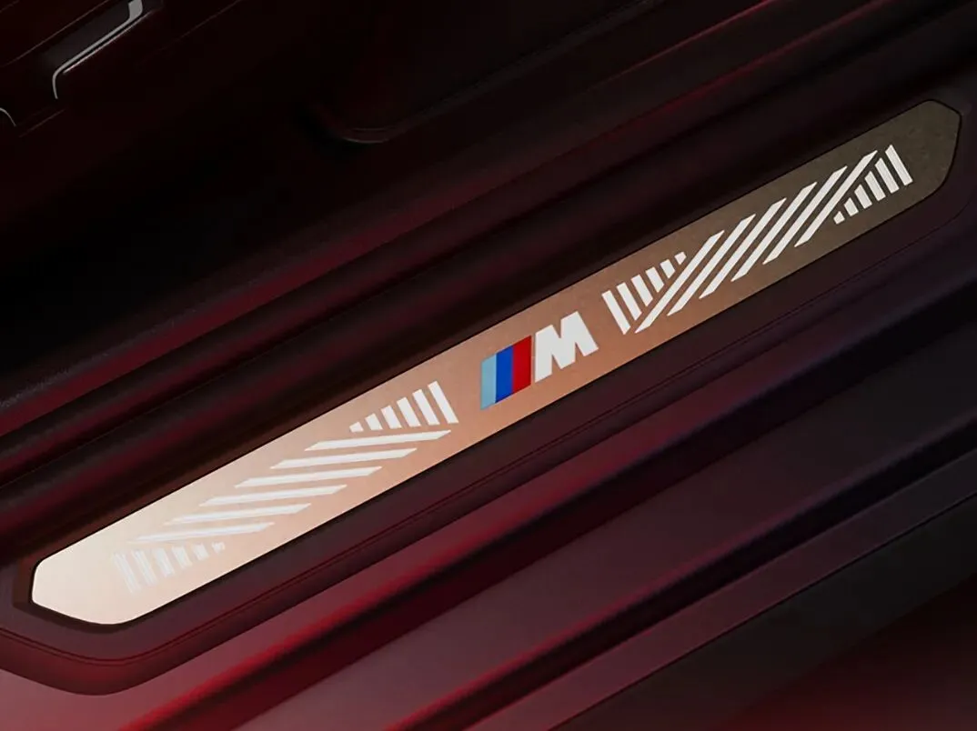 外观与内饰的马年版专属设计是核心亮点,新车首次引入个性化定制磨砂宝石青车漆,搭配熏黑22英寸742M空气动力学轮毂与黑化外观组件,质感高级且辨识度突出。内饰配备金银色调专属迎宾踏板,前排座椅刺绣标识由宝马Designworks上海设计团队打造,灵感源自敦煌壁画“神马”形象,细腻勾勒骏马灵动姿态,赋予“马若乘空”的美好寓意,实现豪华感与文化共鸣的双重提升。