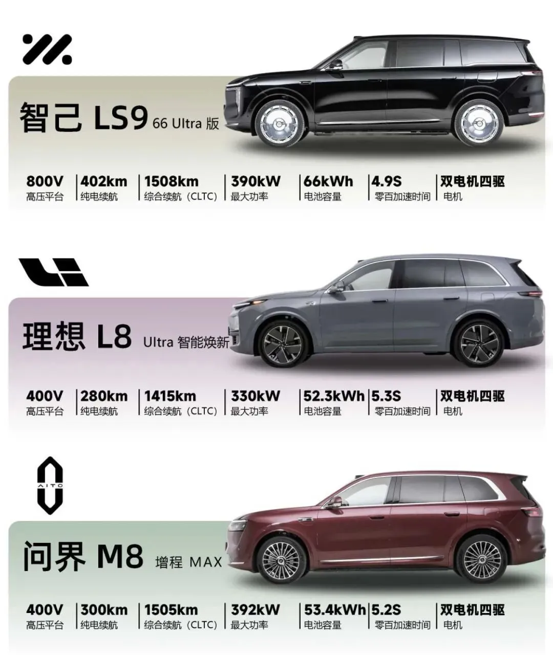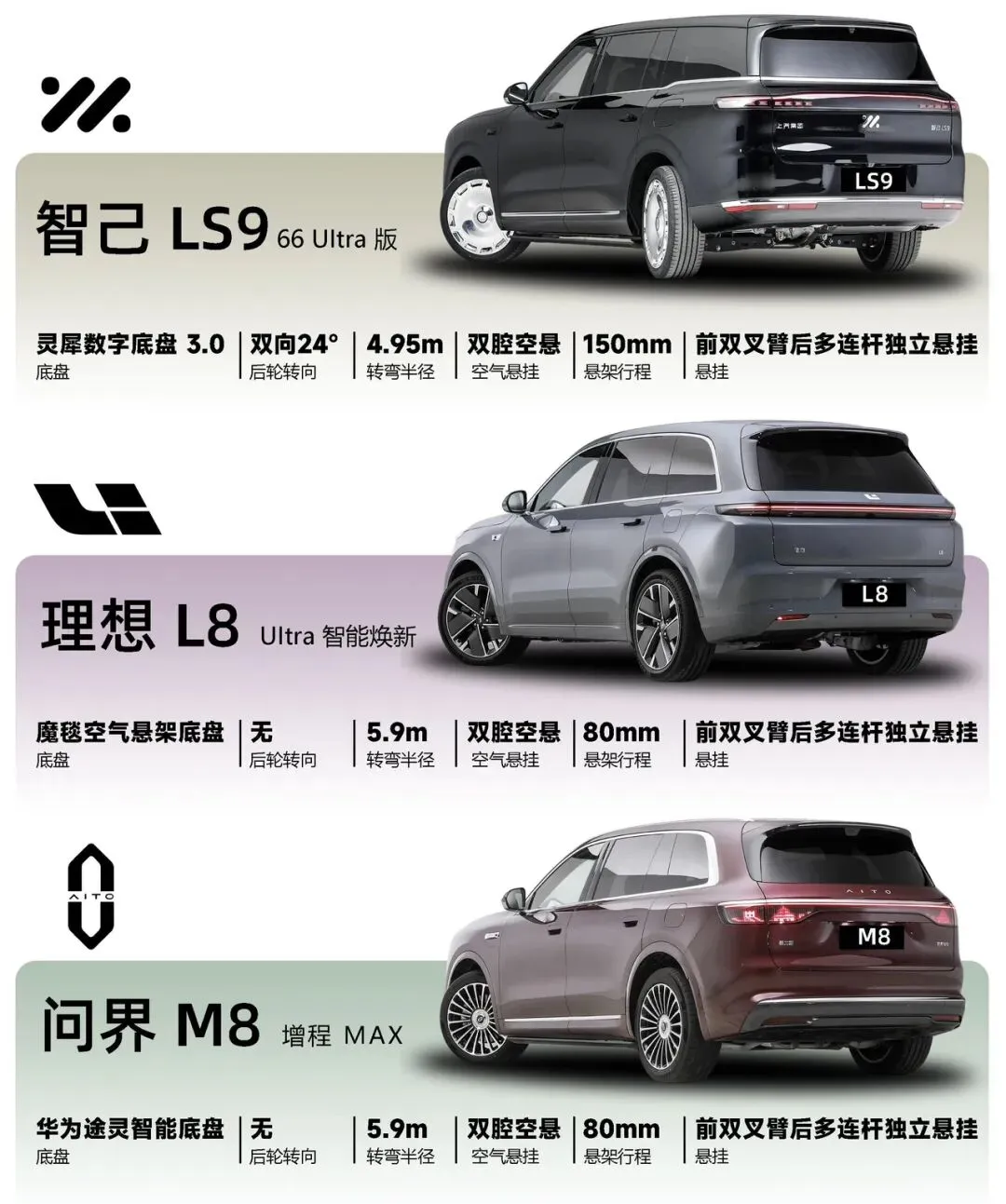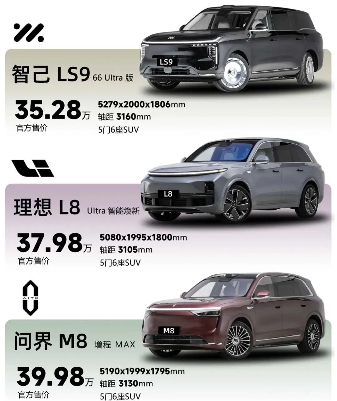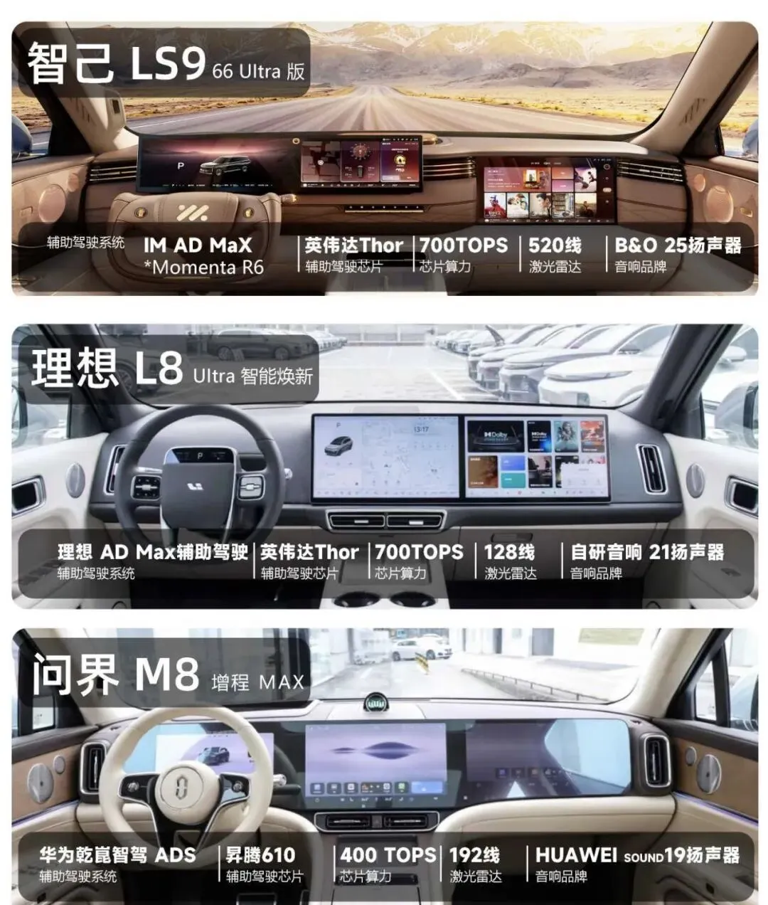 今天就把目前市场上三款顶流大六座SUV说透:智己LS9、理想L8、问界M8,从驾驶、续航、座舱、智驾到真实使用场景,一篇帮你选对。