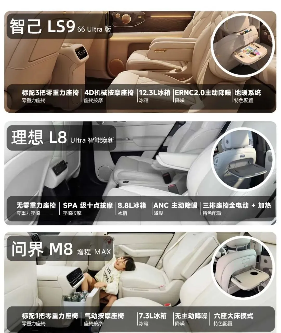 三排都有电动加热,还有8.8L车载冰箱,