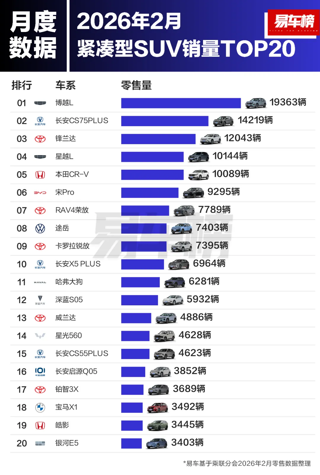 根据易车整理的乘联分会零售数据显示:
