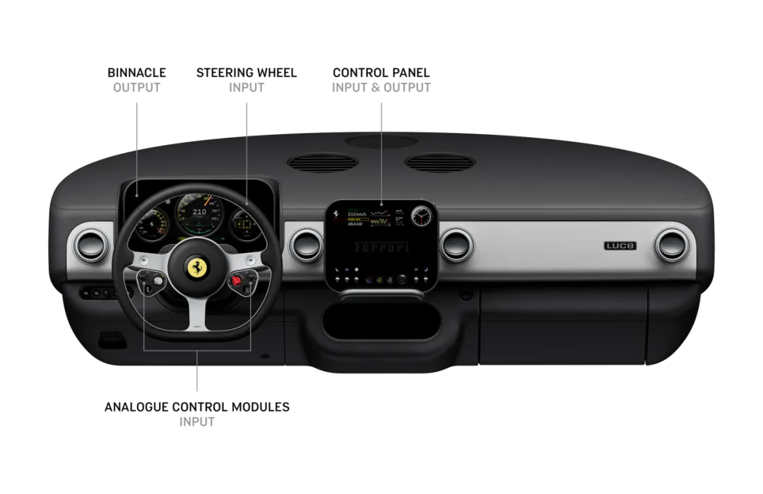 法拉利刚在旧金山发布了品牌历史上首辆纯电超跑——Ferrari Luce的内饰以及驾驶界面设计。Luce在意大利语中被译为“光”,象征着这辆车将照亮法拉利的电动未来。