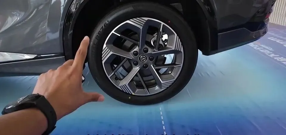 这辆1.5T中配车型,它这个车轮是一个19英寸双色的,尺寸够用,样式也不土,配合这个车身比例,看着比较协调。