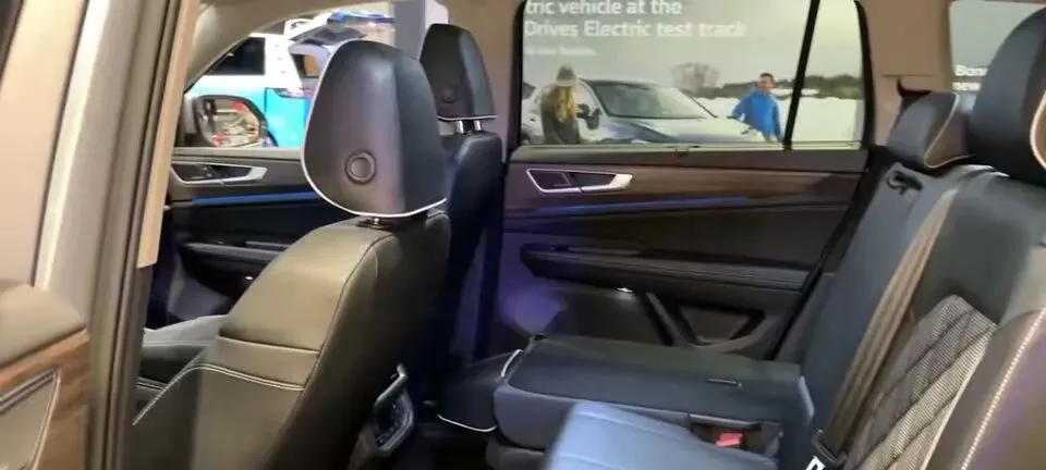“大众途昂车身内部座椅展示,包括座椅纹路、设计等。”