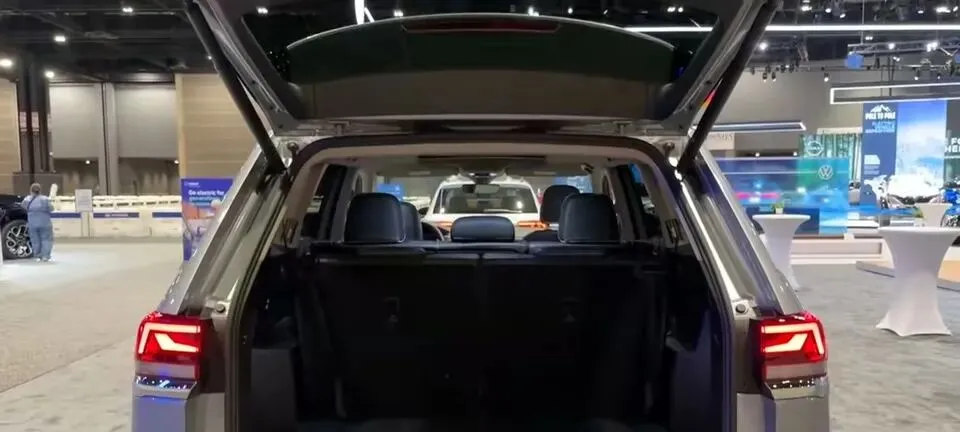 “大众途昂车身尾部展示,包括车灯设计、汽车logo等。”