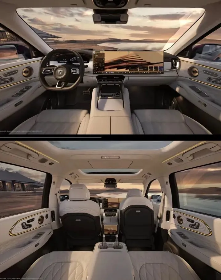 动力:2.0T超级电混;双电机660kW/三电机1030kW;2秒级破百;续航:CLTC纯电256/328km;综合超1400km;900V+6C超充,20%充电至80%仅需9分钟;配置亮点:浩瀚AI底盘,空悬+48V防倾杆,宽体豪华,性能顶格;核心参数:900V高压;热效率46%。