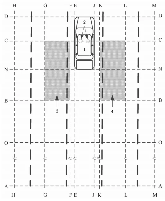 线B平行于试验车辆后缘,并位于试验车辆后缘后部3.0m处