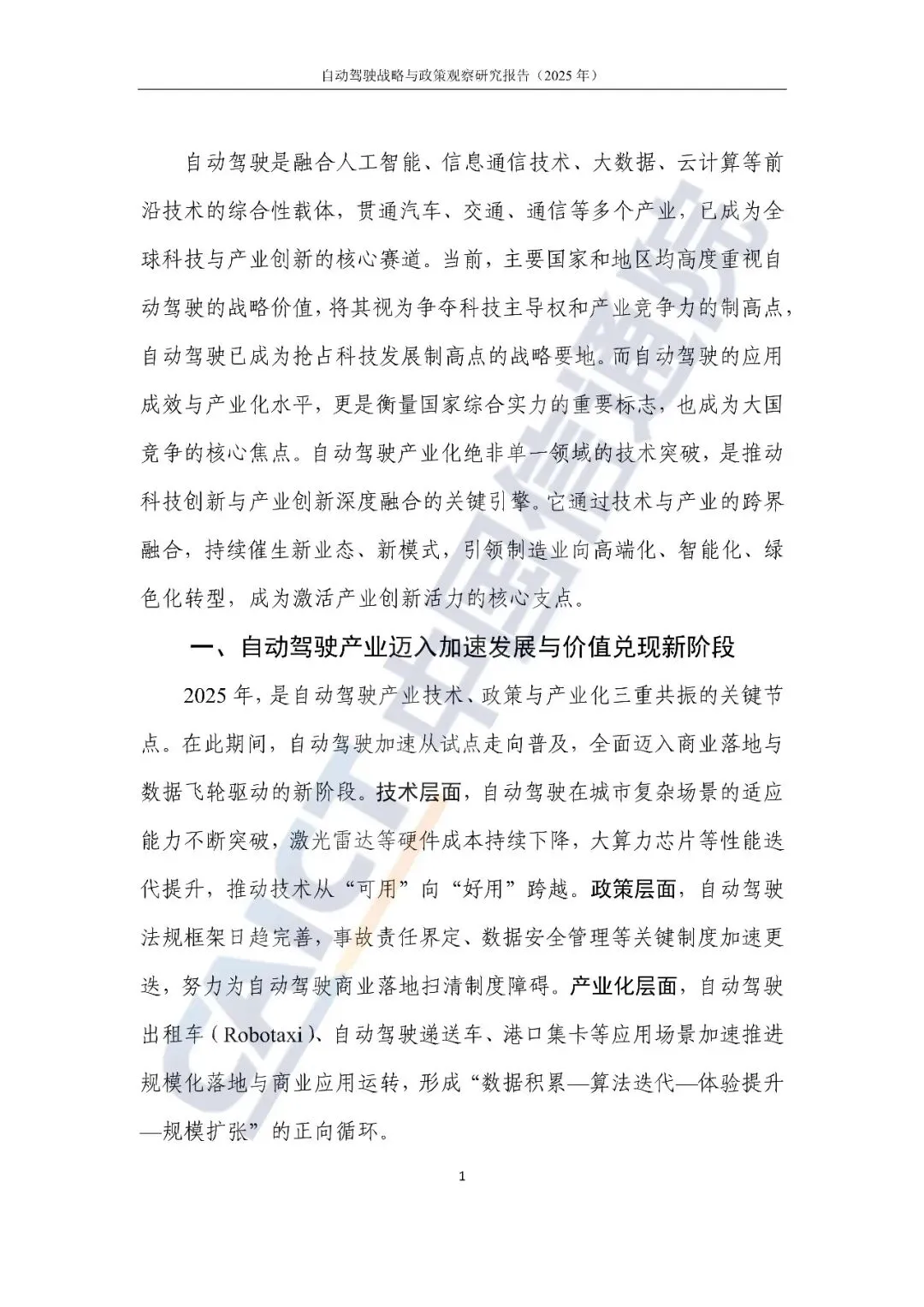 自动驾驶是融合人工智能、信息通信技术、大数据、云计算等前前沿技术的综合性载体,贯通汽车、交通、通信等多个产业,已后我为全球科技与产业创新的核心赛道。当前,主要国家和地区均高度重视自动驾驶的战略价值,将其视为争夺科技主导权和产业竞争力的制高点自动驾驶已成为抢占科技发展制高点的战略要地。而自动驾驶的应用成效与产业化水平,更是衡量国家综合实力的重要标志,也成为大国竞争的核心焦点。自动驾驶产业化绝非单一领域的技术突破,是推动科技创新与产业创新深度融合的关键引擎。它通过技术与产业的的跨界融合,持续催生新业态、新模式,引领制造业向高端化、皆能化、绿色化转型,成为激活产业创新活力的核心支点。