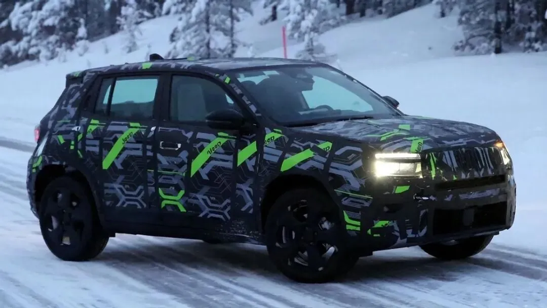 这款小型SUV已经在海外市场卖了好几年,尽管它并不是一台纯粹的越野车,而更像是哈弗大狗PLUS Hi4这样的所谓“轻越野”产品,可比起使用插混的后者,它却拥有完全拆掉内燃机的纯电选项,并成为了不少海外用户开在冰天雪地里的“大玩具”。就在最近,Jeep Avenger又一次出现在了海外媒体的谍照镜头中,开始了面向欧洲市场的2027款冬季伪装测试。