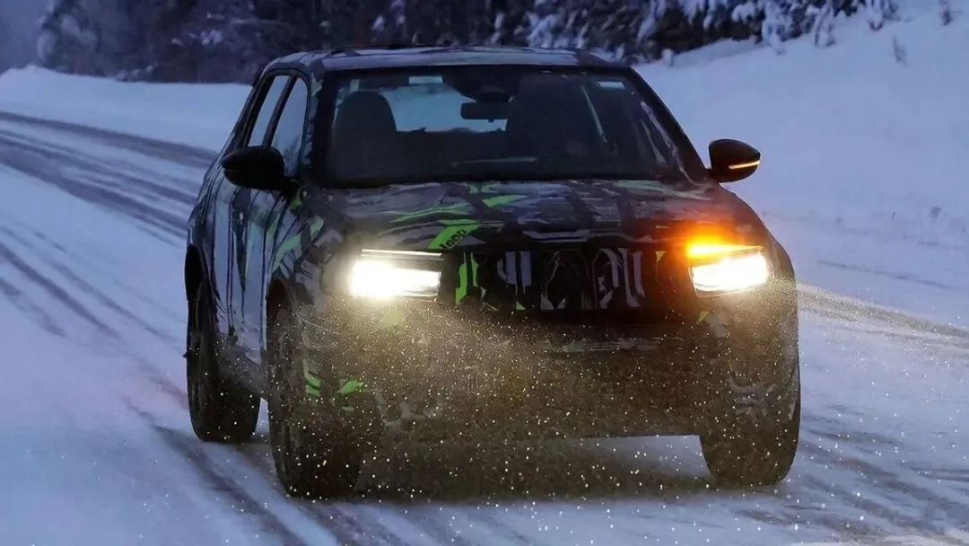 当然,即便是受到了伪装、降雪以及光线的影响,可全新Jeep Avenger依旧保有较为浓重的前保险杠包围,其中还带有明显的下气孔设计来确保激烈输出过程中的冷却效果。甭管说其中搭载电动机的版本到底需要多少冷却支持,但至少这是可以让车辆保持硬派SUV视觉冲击力的,无论是轻混版本,还是纯电版本都是这样。