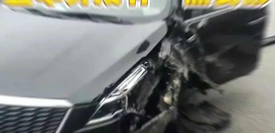 凯迪拉克XT5撞击大卡车事故,车身结构坚固。