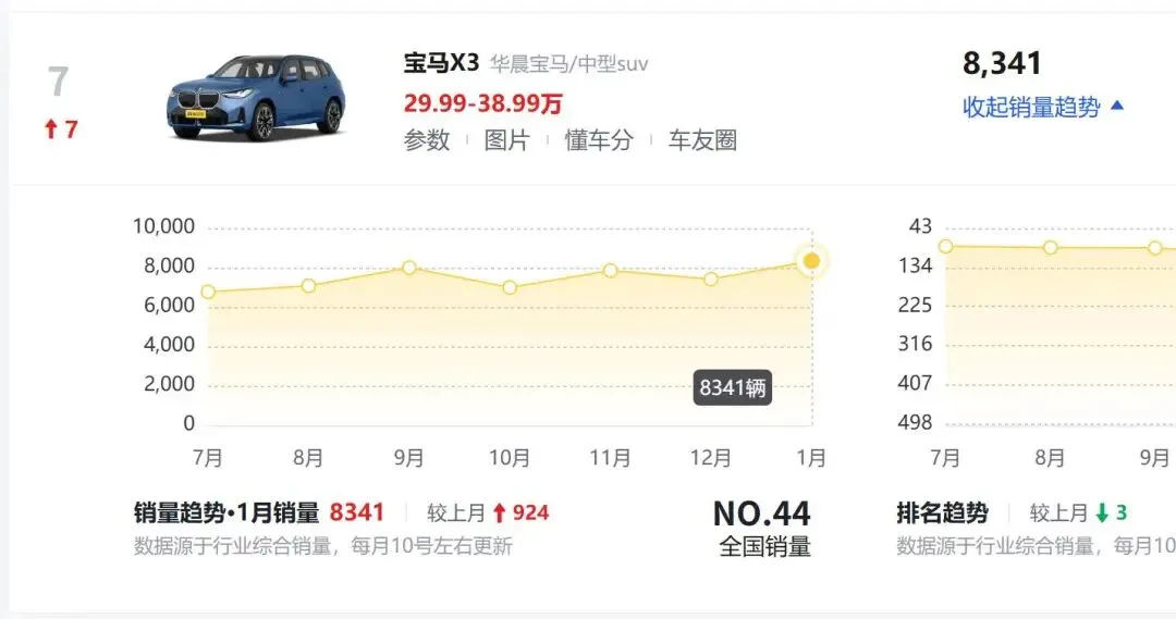 可是谁能够想到,短短一年时间过去,宝马X3直接逆风翻盘!2026年1月销量直接干到8341台,接近万台水平,稳居高端SUV销量前列,比老对手奔驰GLC还能打,当初骂它的人,现在估计都懵了:这台车到底靠啥盘活的?