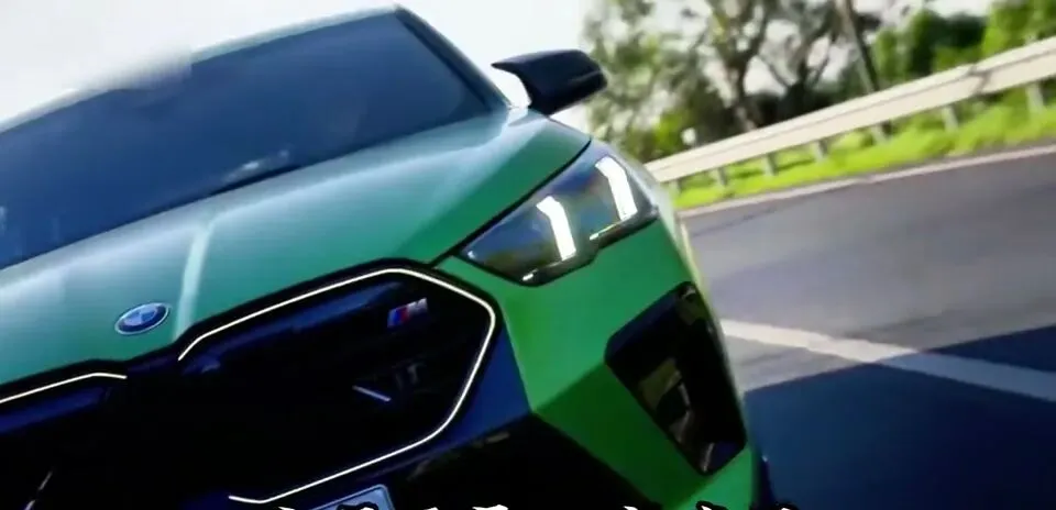 绿色宝马X2在道路上行驶。