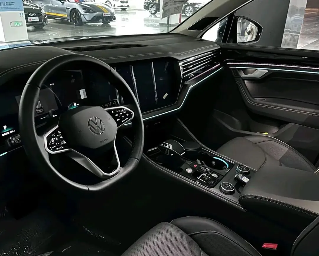 夜幕下的都市街头,大众途锐黑武士如神秘骑士降临,深邃黑车身吞噬光芒,硬朗线条彰显力量。车内顶级皮革与科技感中控营造豪华私密空间,澎湃动力征服全路况,以独特魅力重新定义豪华SUV。