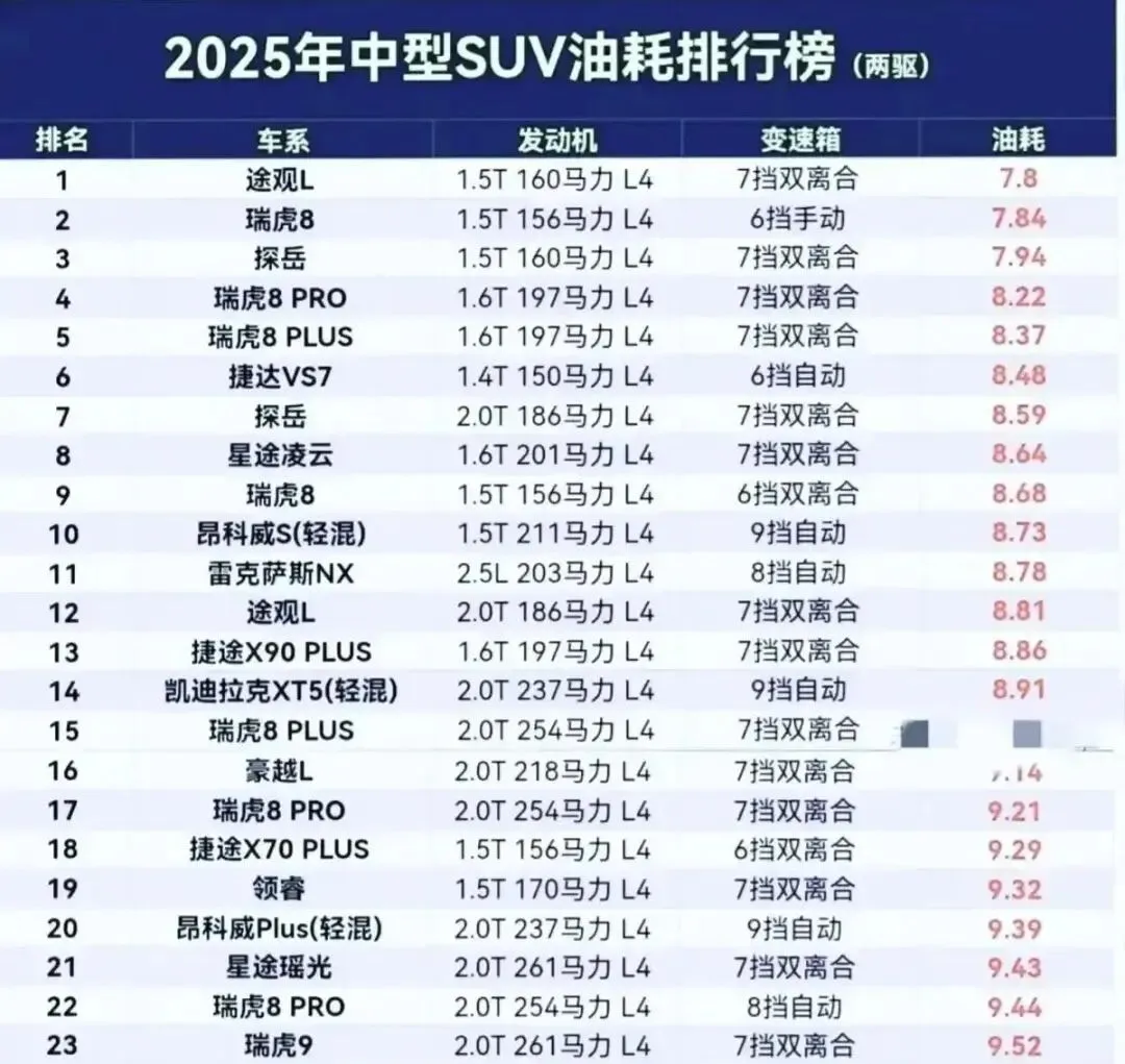 油价涨得快,认知更新得慢。但别慌,数据不会骗人。2025年众测榜单早就说了:中型SUV,早不是“油老虎”了。
