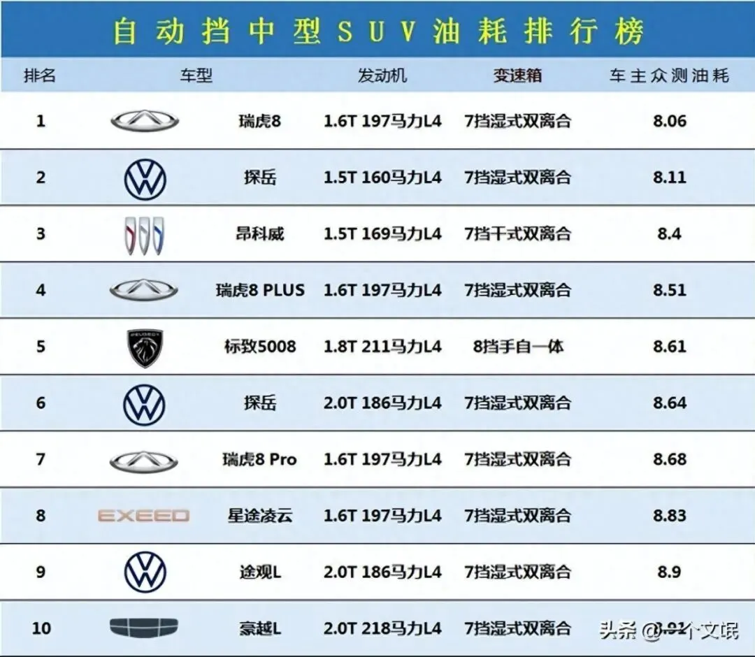 说实话,这事儿真不新鲜。2025年众测榜单刚出,途观L、探岳、瑞虎8这些常见款,油耗全压在8升左右。以前我总以为SUV再小也得9升起步,结果现在跑高速才7.8?我朋友老王当场愣住,开车去超市的路上直接回拨电话:“兄弟,我这车是不是偷了电瓶?”