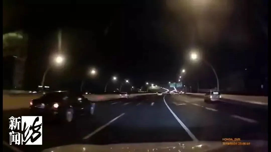 事发时,一辆黑色轿车在中环上行驶,突然向右转弯后又突然向左急转弯,撞击到正在一旁行驶的白色大众轿车,白车随即被撞下高架。
