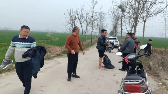 3月14日下午3时许,彭桥乡武装部长陈辞、包村干部孙统一以及王店村支书翟海波正在王店村李石庄进行机井排查工作。巡查途中,后方一辆白色轿车突然急促鸣笛,声声催促。