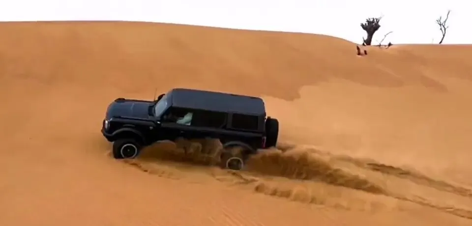 画面里,“车辆在沙丘上行驶,扬起大量沙尘,展示车辆的越野性能”。这种场景,其实正是很多人选择柴油四驱SUV的原因。