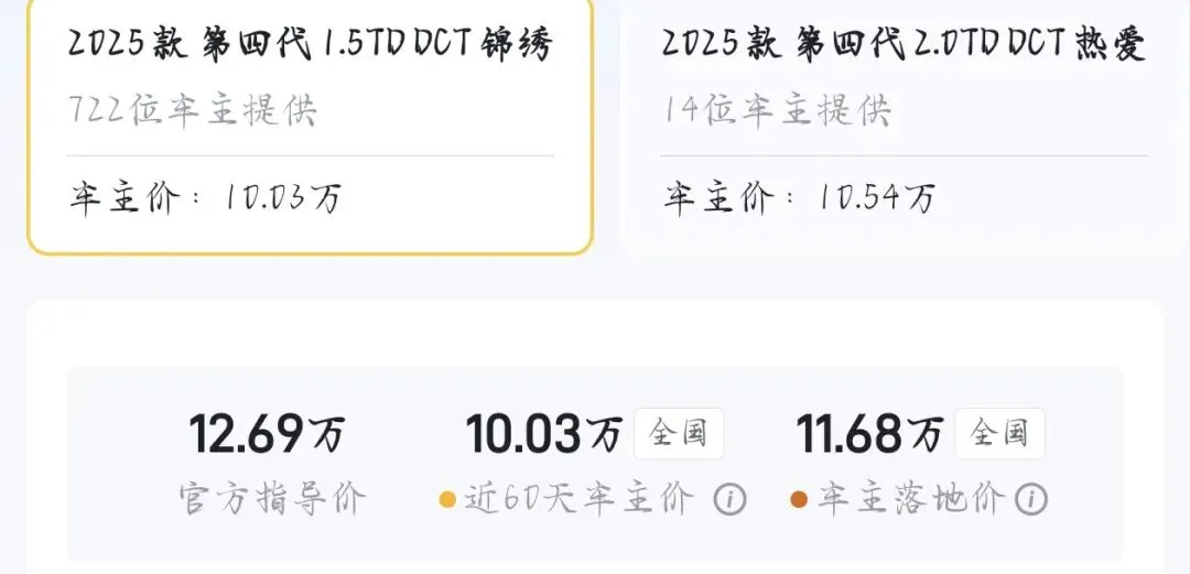 指导价12.69万,裸车价直接落到11.03万,全款落地大概11.68万就能拿下。