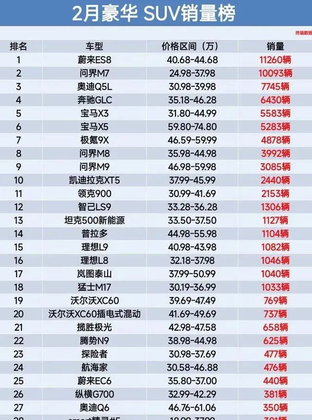 这场豪华SUV的战役,才刚刚进入白热化。二月的赢家们固然可喜,但真正的考验还在后面。谁能持续拿出过硬的表现,谁就有机会在年底的大榜上笑到最后。