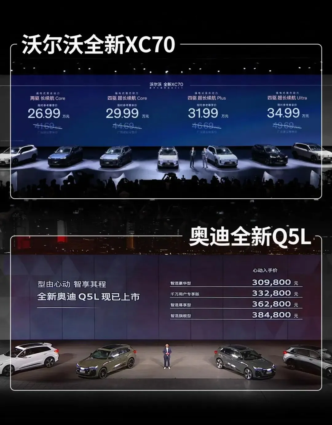 在这样的背景下,一些传统豪华品牌之间的对比就变得很有意思。例如沃尔沃全新XC70与奥迪全新Q5L,两款车都来自知名品牌,但在技术路线和产品思路上却明显不同。