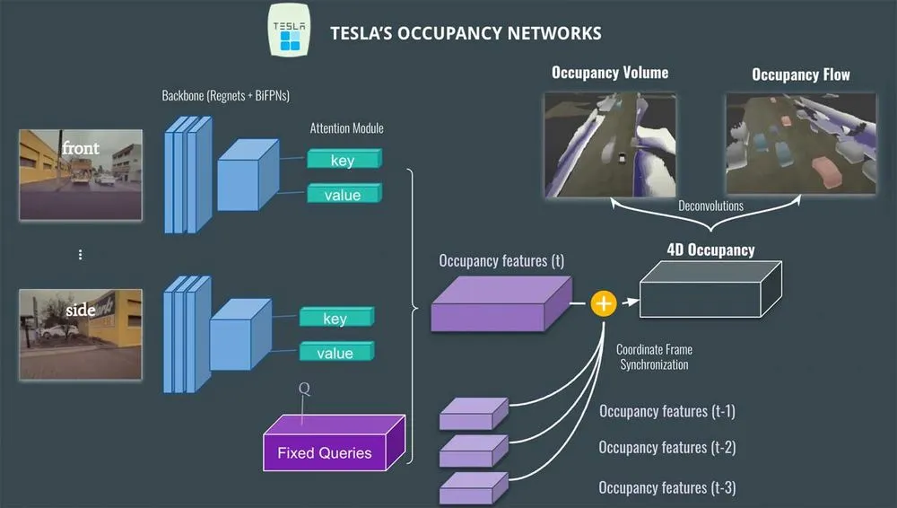 - 这种方法让特斯拉能够利用数百万辆车的行驶数据进行自我监督学习,无需人工介入即可不断提升感知精度。