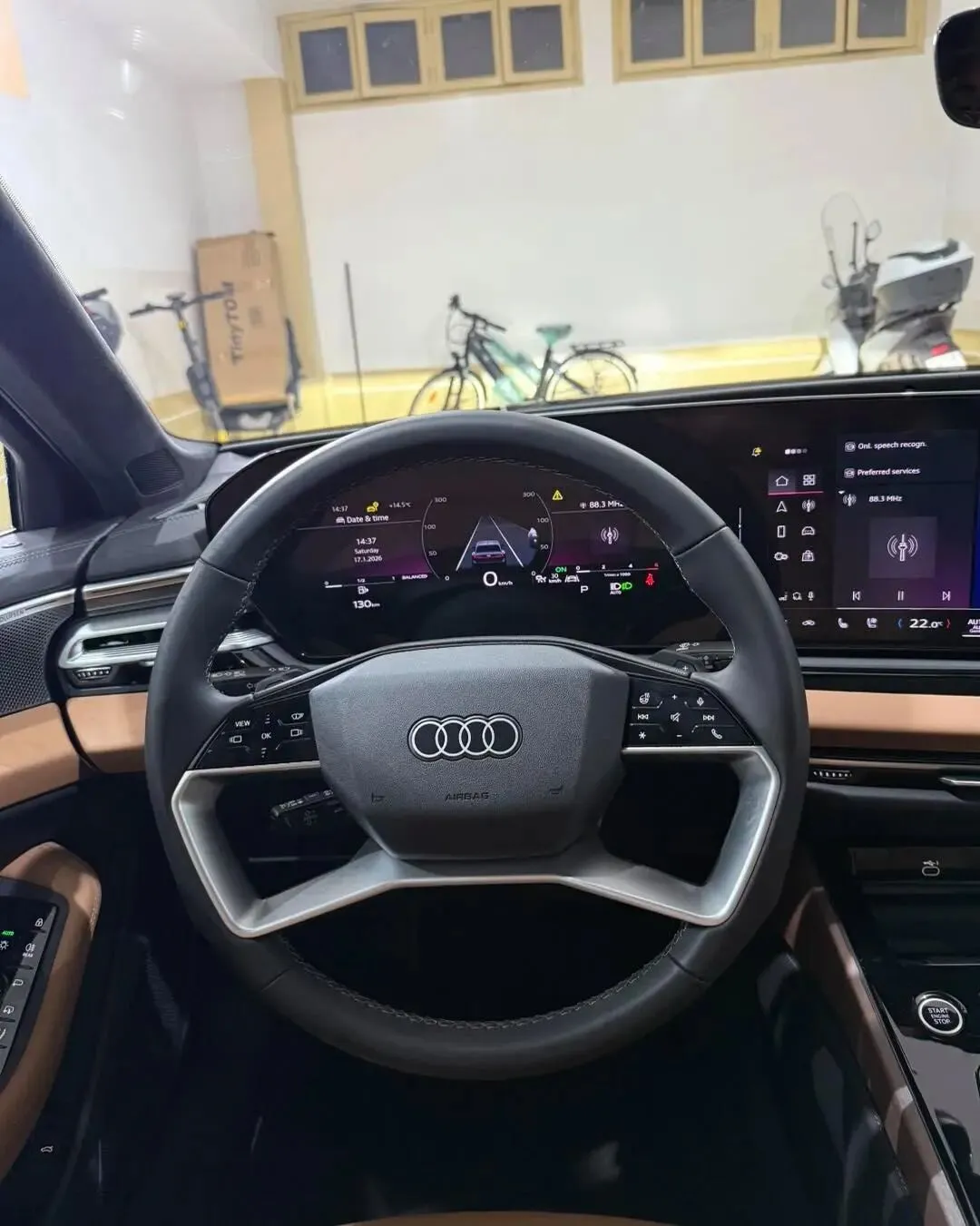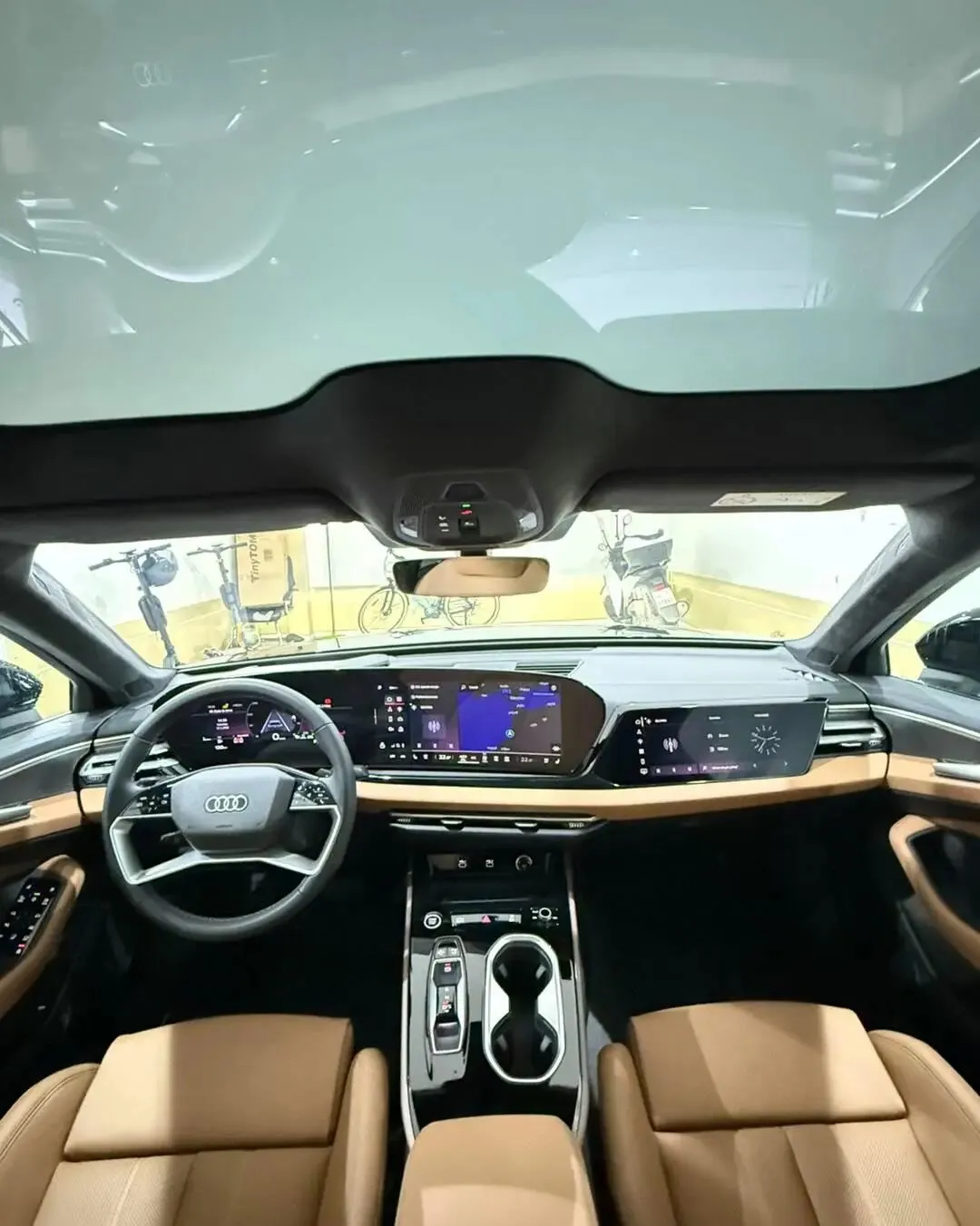 车内比老款有了全面的升级,车内采用了全新的设计,配置有11.9英寸的全液晶仪表,还搭载了14.5英寸的悬浮式中控屏幕,配置有10.9英寸的副驾驶屏幕,还搭载了HUD抬头显示功能,提供车内氛围灯,还有全景天窗,座椅按键集成在了门板处。