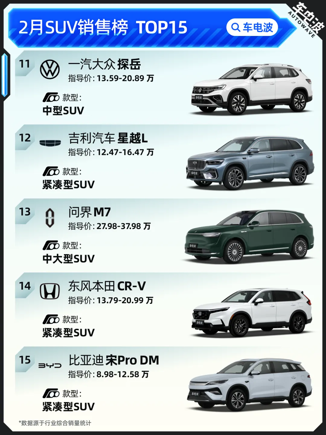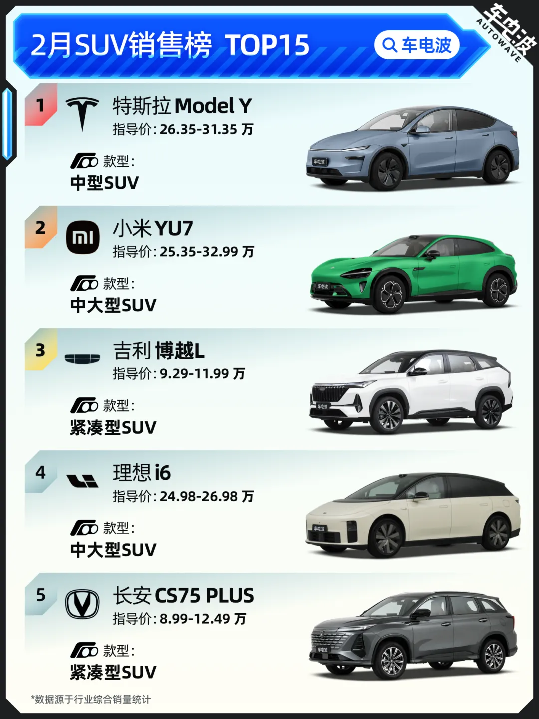 数据整理:车电波(基于行业综合销量统计)