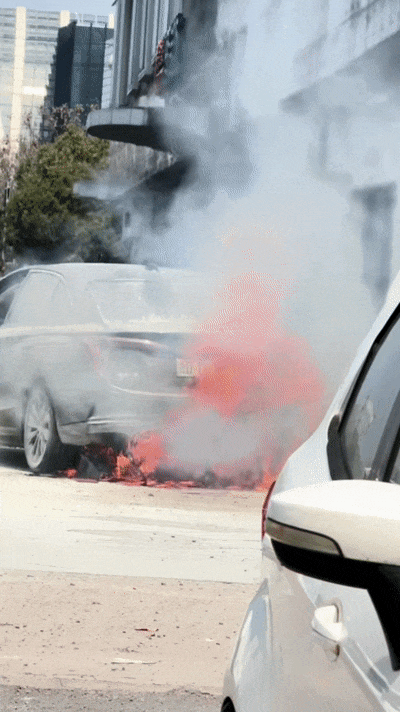 >啥情况?绍兴街头一辆轿车起火!底盘处燃起大火,太可怕了……