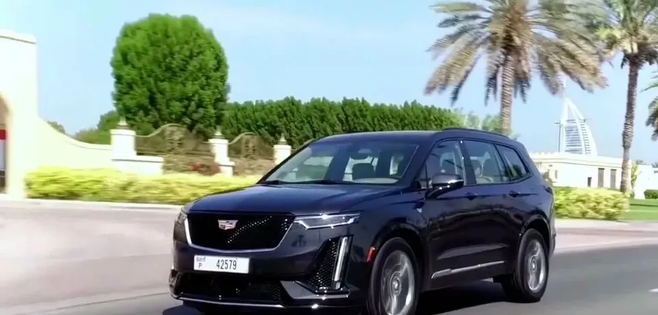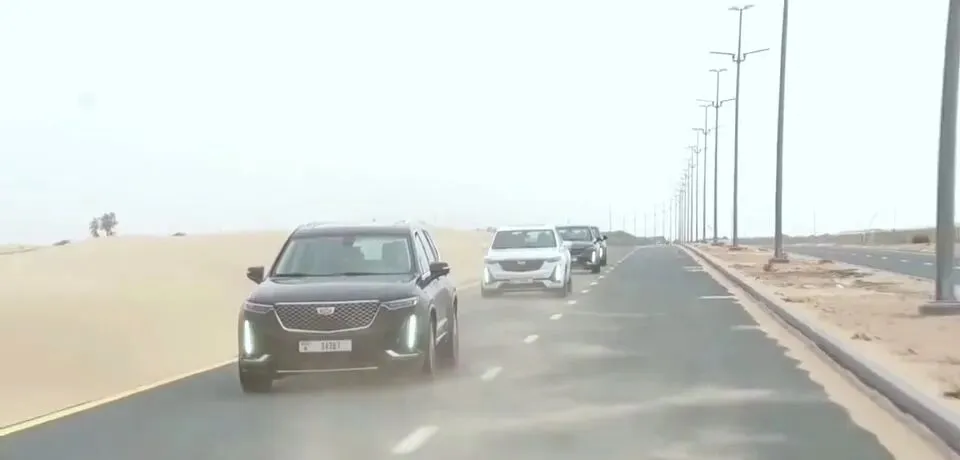 动态画面中,“凯迪拉克XT6驾驶场景展示”呈现出稳健姿态。整车在行驶状态下,车身姿态平稳。