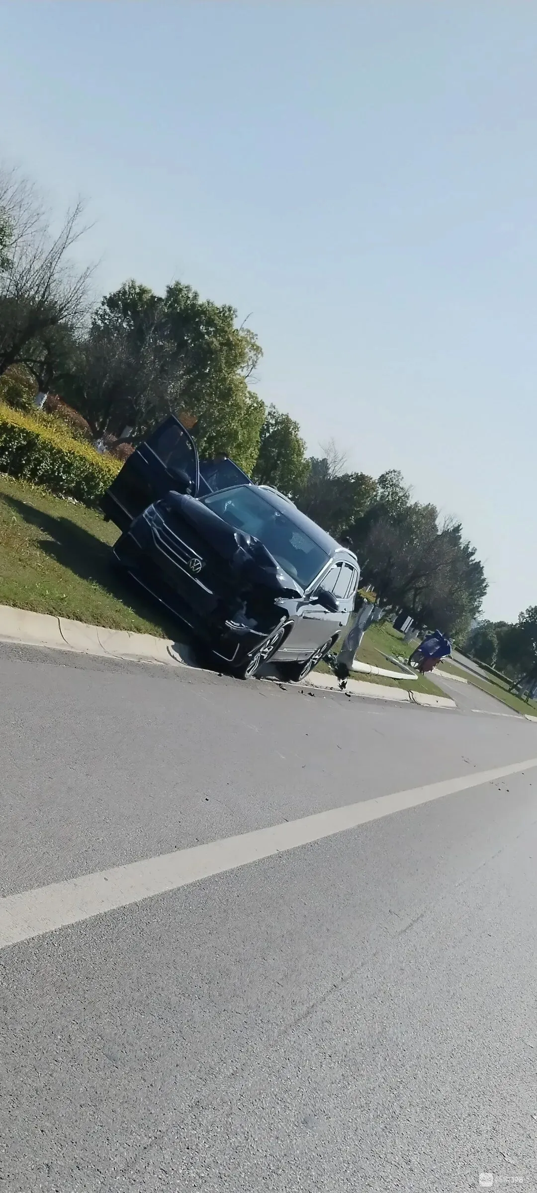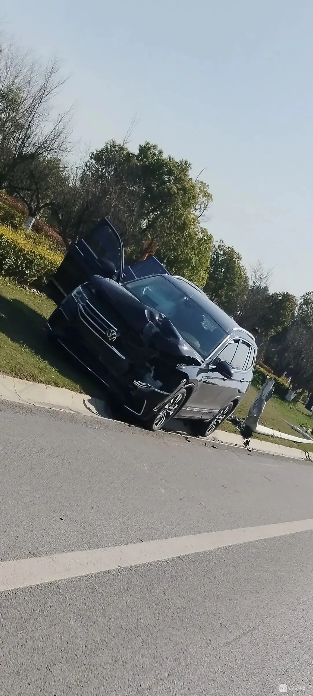 3月14日下午 3 点左右,景高速出口往生态路方向发生吓人车祸,一辆未悬挂车牌的大众 suv 撞上灯柱,车外观严重受损,气囊弹出,驾驶员不知去向,道路千万条安全第一条,开车不喝酒,喝酒不开车,亲人两行泪。