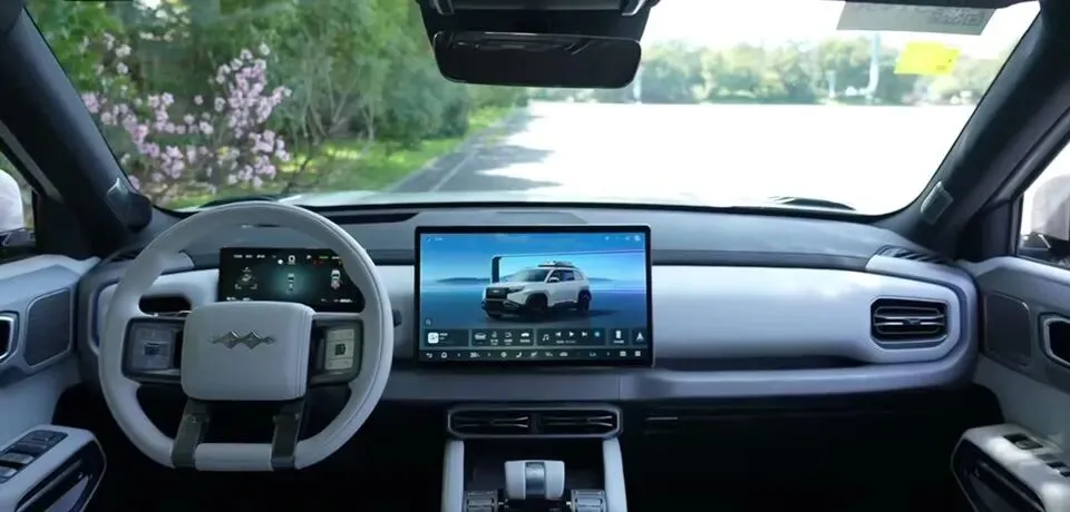 方程豹豹3内饰设计,内饰配色为白色,配备了15.6英寸的屏幕
