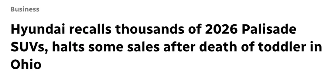 如果你或者身边有人正在开 2026款 Palisade,建议注意一下这个信息。https://www.cbc.ca/news/business/hyundai-palisade-sales-stop-recall-canada-us-9.7128056