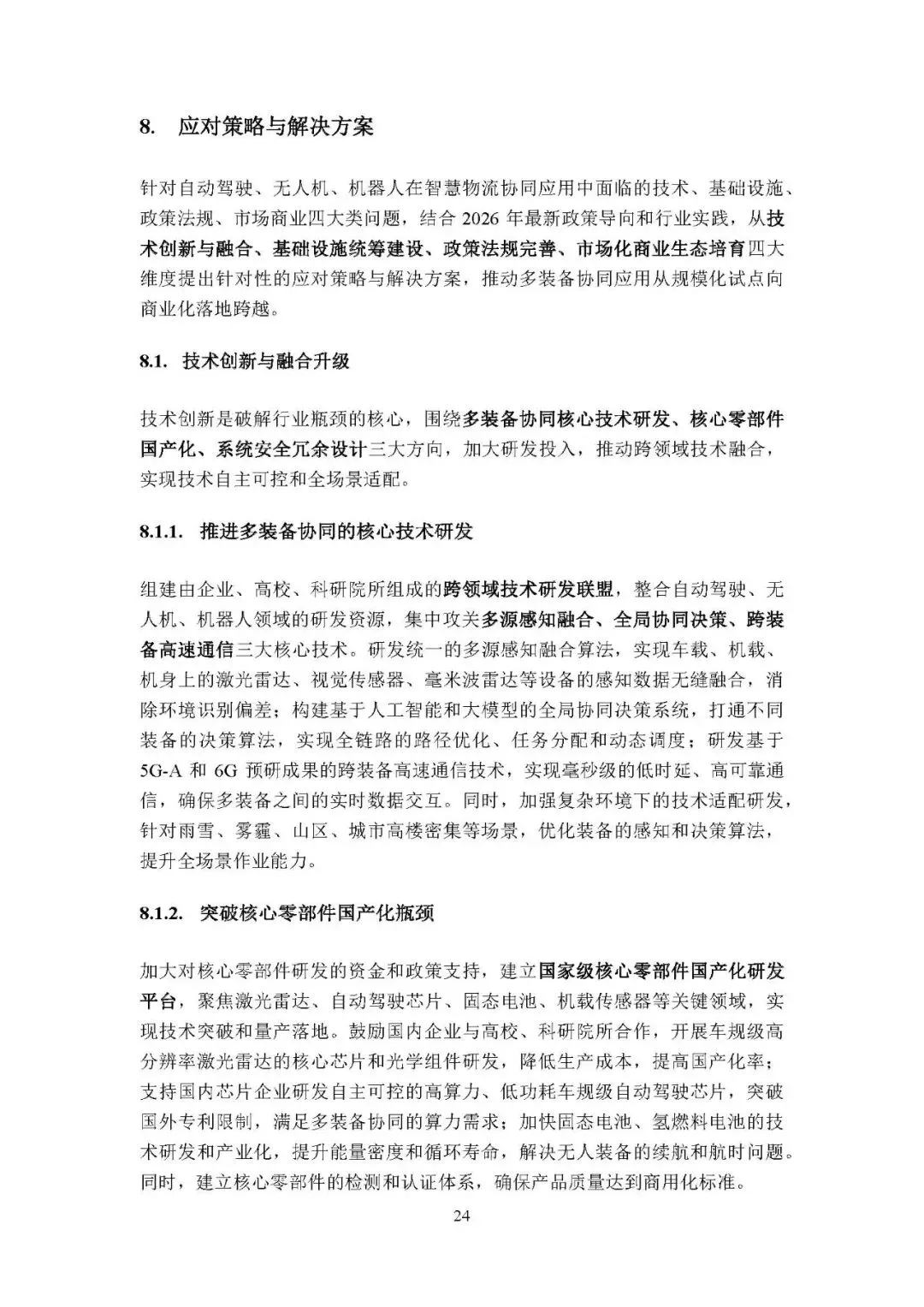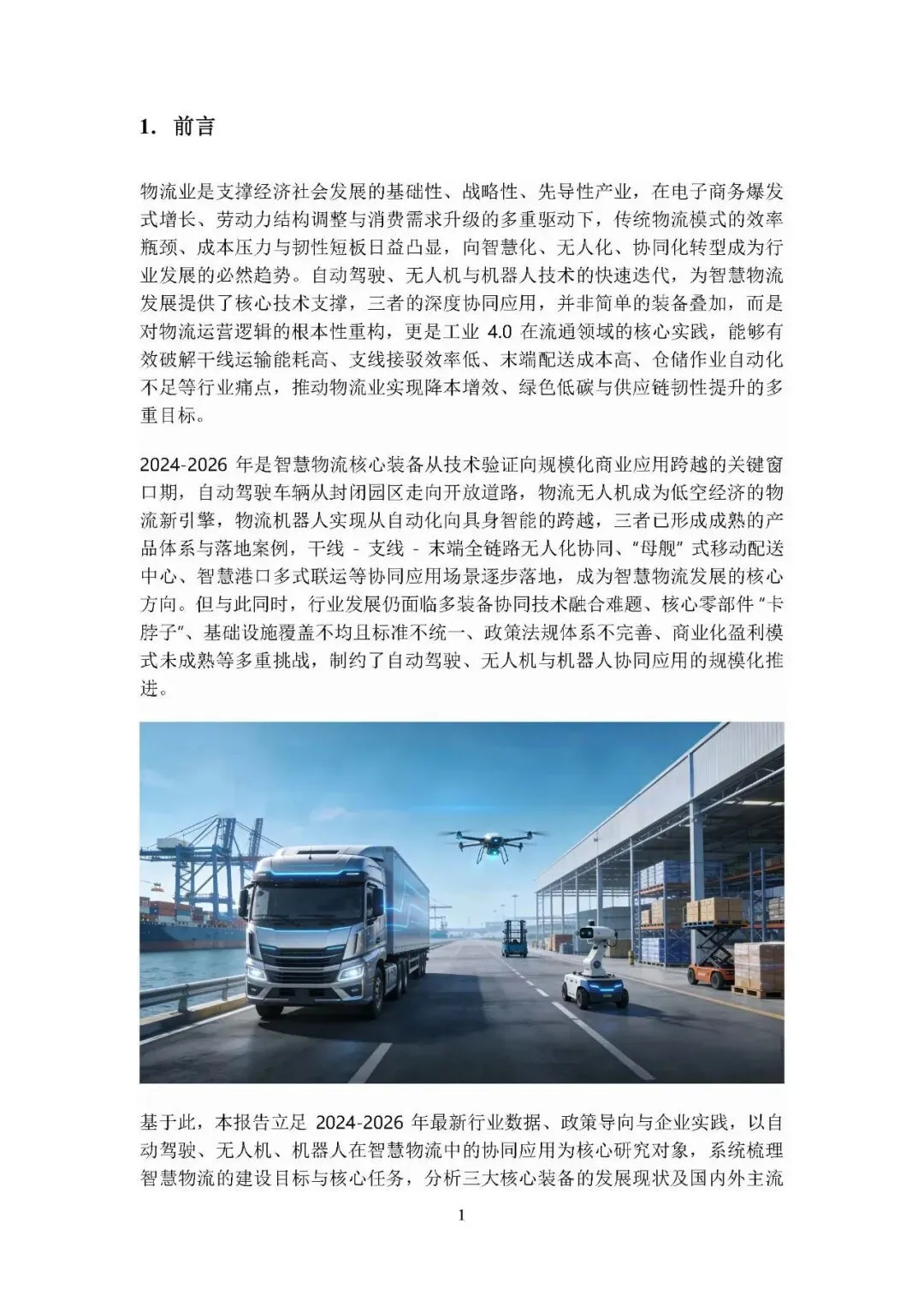 这份报告聚焦 2024-2026 年智慧物流发展关键期,系统分析自动驾驶、无人机与机器人在物流中的协同应用,梳理发展现状、典型场景、现存问题并提出解决方案,同时结合国内外案例提炼经验,展望行业未来趋势并给出多方发展建议,核心旨在推动三者协同应用的规模化落地,构建高效、绿色、安全、韧性的现代智慧物流生态。以下是核心内容总结。