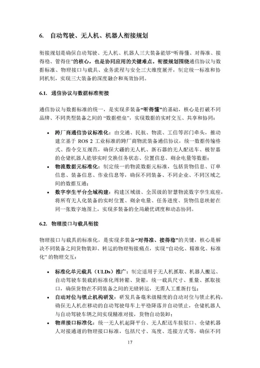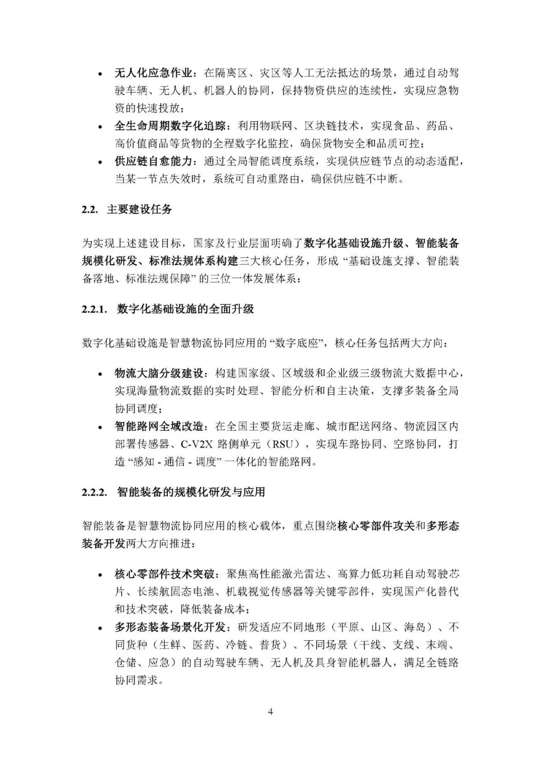三大核心任务:全面升级数字化基础设施,建设三级物流大脑与智能路网;规模化研发应用智能装备,突破核心零部件并开发场景化装备;构建标准体系与法规框架,实现全产业链接口标准化、完善法律法规并建立监管体系。