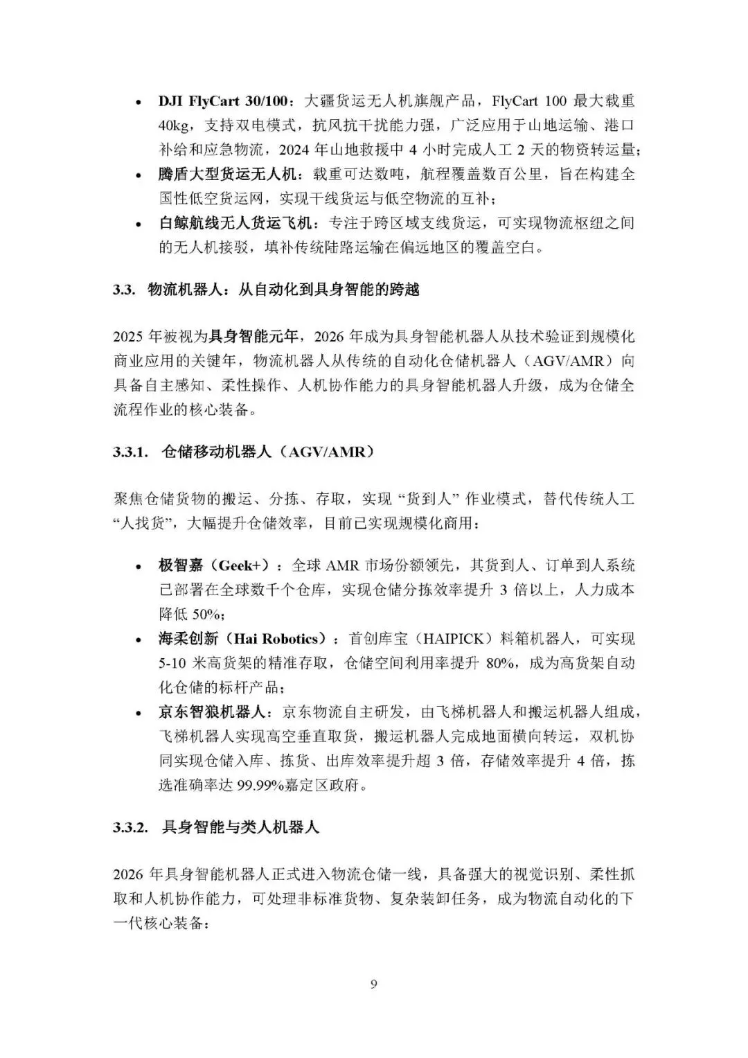 物流机器人:从 AGV/AMR 自动化仓储机器人(极智嘉、海柔创新)向具身智能机器人(Boston Dynamics Stretch、睿尔曼)跨越,2026 年正式进入物流仓储一线。