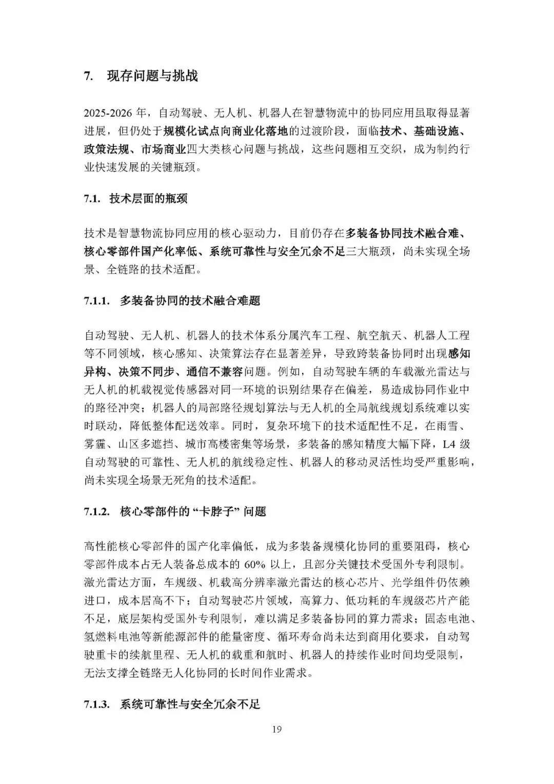 技术层面:多装备协同技术融合难,感知、决策算法存在领域差异;核心零部件 “卡脖子”,国产化率低、成本高;系统可靠性与安全冗余不足,单点故障风险高、应急能力薄弱。