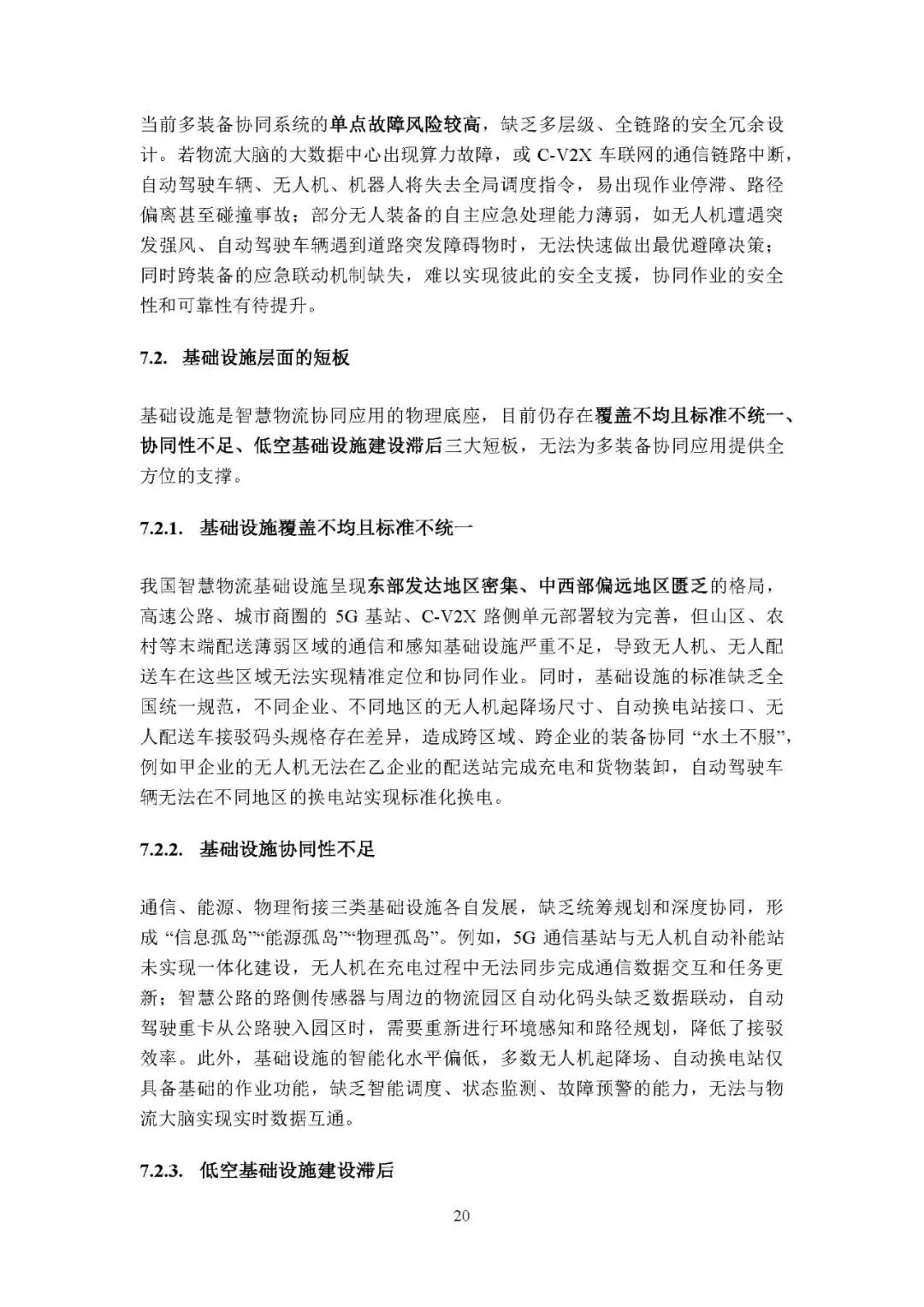基础设施层面:覆盖不均且标准不统一,中西部和农村地区短板明显;基础设施协同性不足,通信、能源、物理衔接设施各自发展;低空基础设施建设滞后,空域划设模糊、监管和起降设施匮乏。