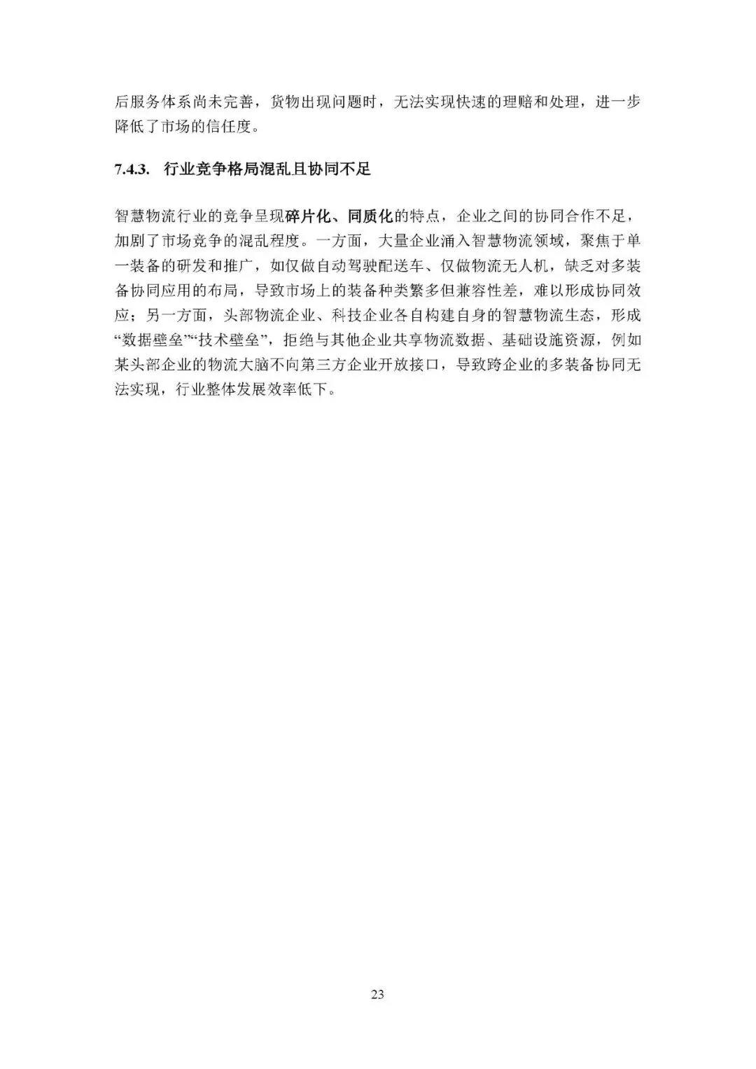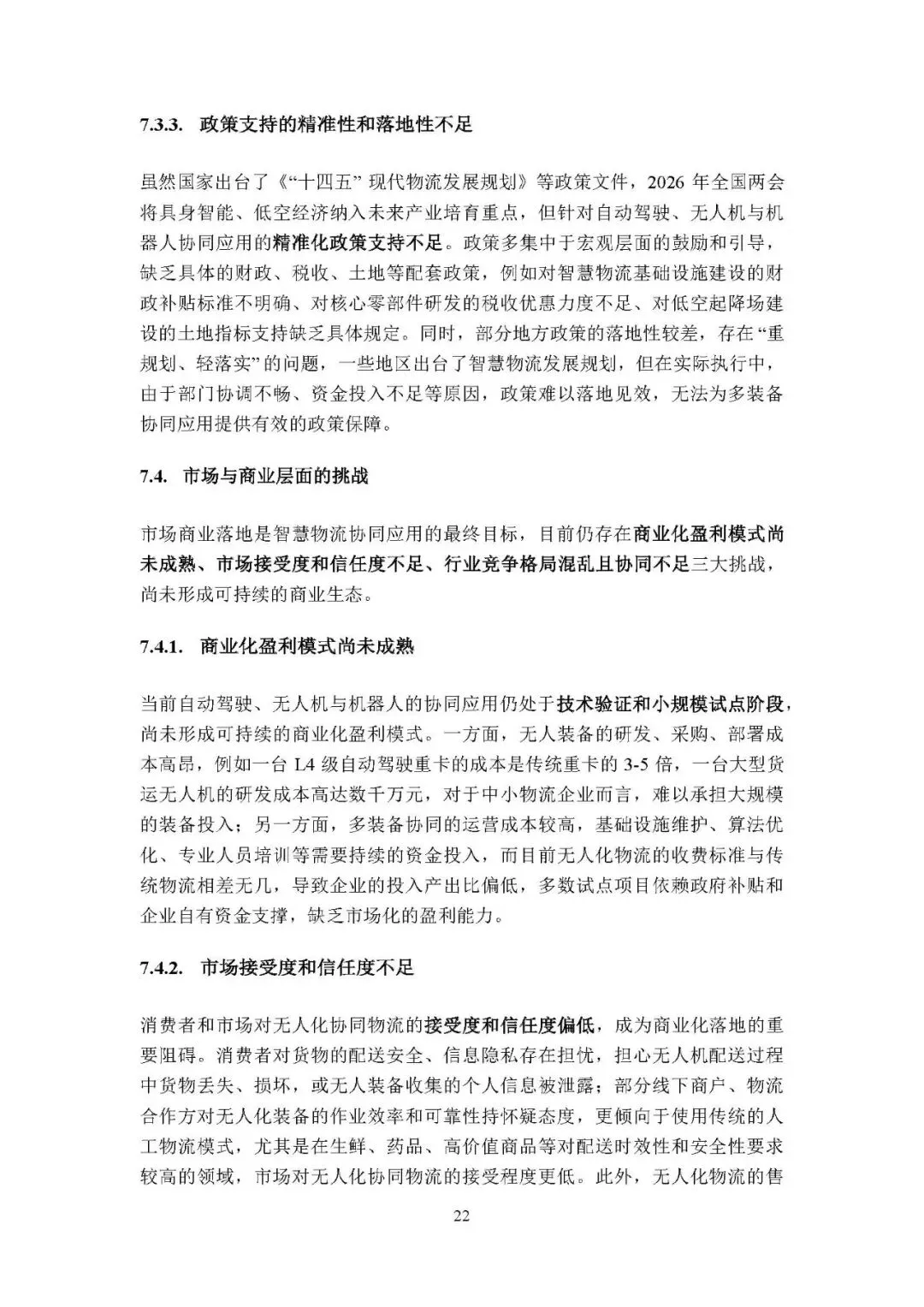 市场商业层面:商业化盈利模式不成熟,装备和运营成本高、投入产出比低;市场接受度和信任度不足,消费者担忧货物和信息安全;行业竞争格局混乱,企业同质化竞争、协同不足,存在技术和数据壁垒。