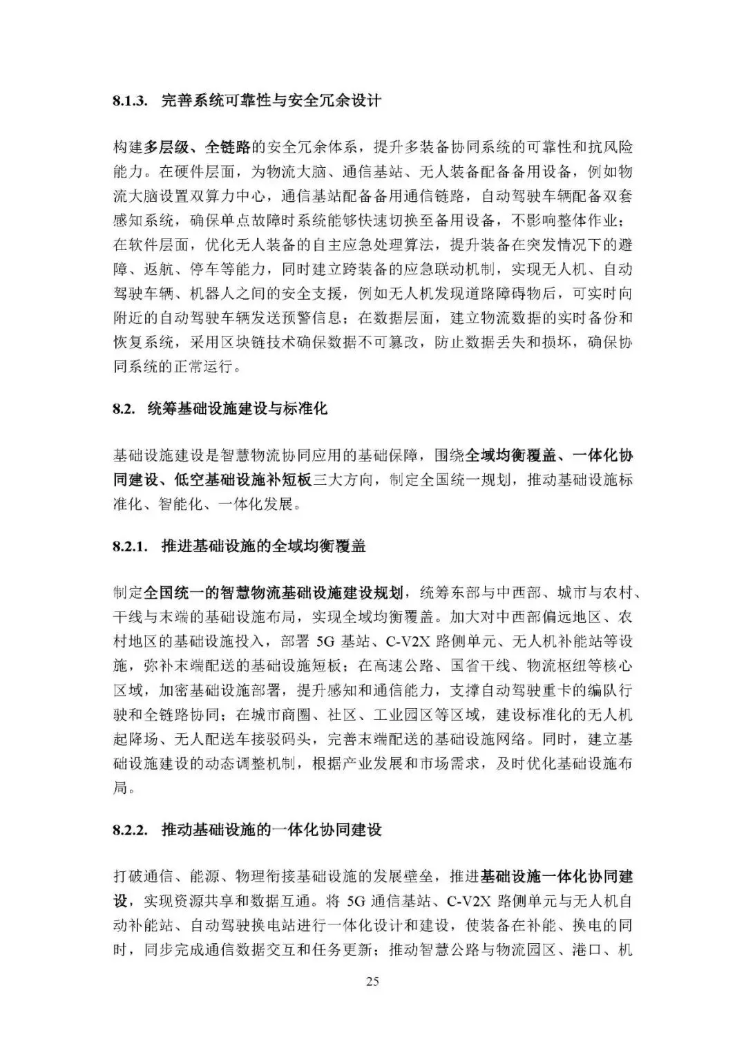 统筹基础设施建设与标准化:推进基础设施全域均衡覆盖,弥补末端短板;推动通信、能源等设施一体化协同建设;加快低空基础设施建设,构建全国统一的低空交通管理体系。