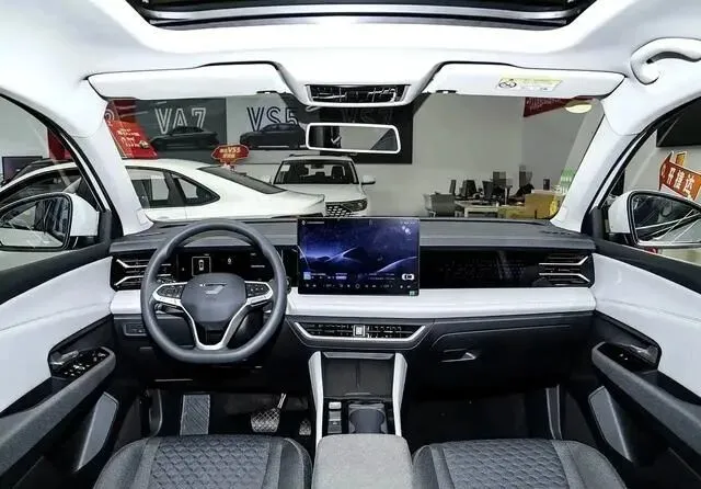 再看捷达VS8。4629mm车长,2731mm轴距,标准紧凑型SUV身材。后排腿部空间两拳多,头部也不压抑。内饰没有太多豪华感,但中控台和门板都包了软质材料,14.6英寸悬浮屏+10.25英寸液晶仪表,支持Carlink、HiCar,还有DeepSeek和豆包双AI语音助手。