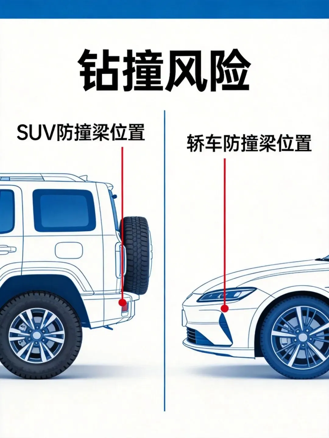 轿车的防撞梁碰不到SUV的主力吸能区,直接怼进SUV的车底。
