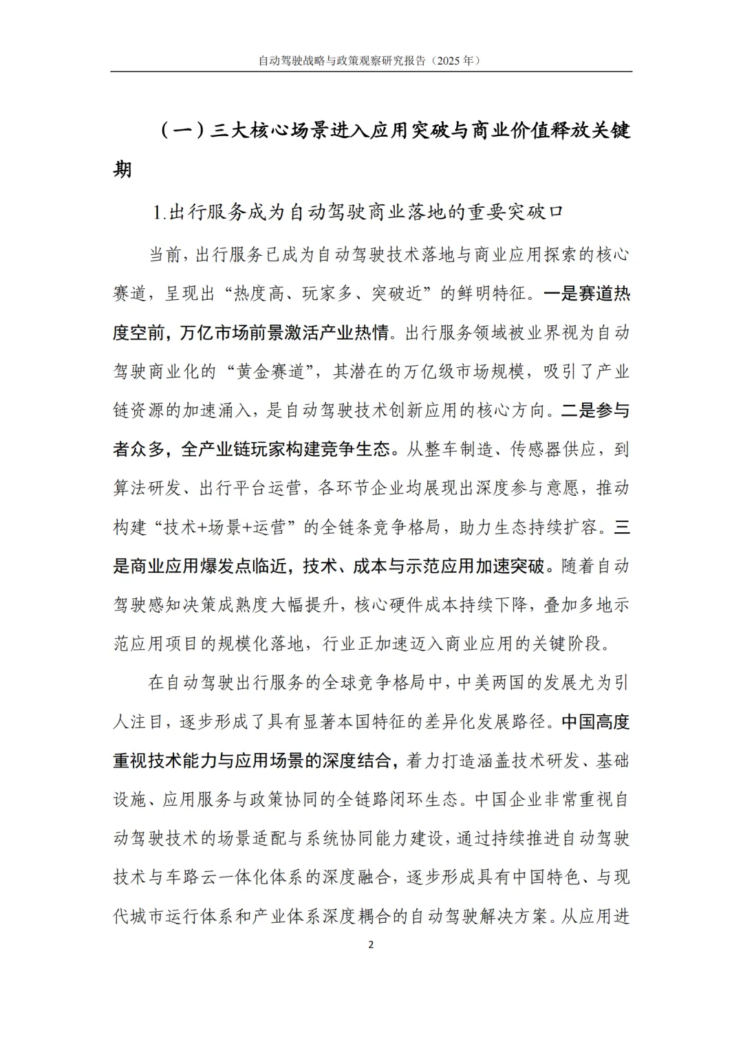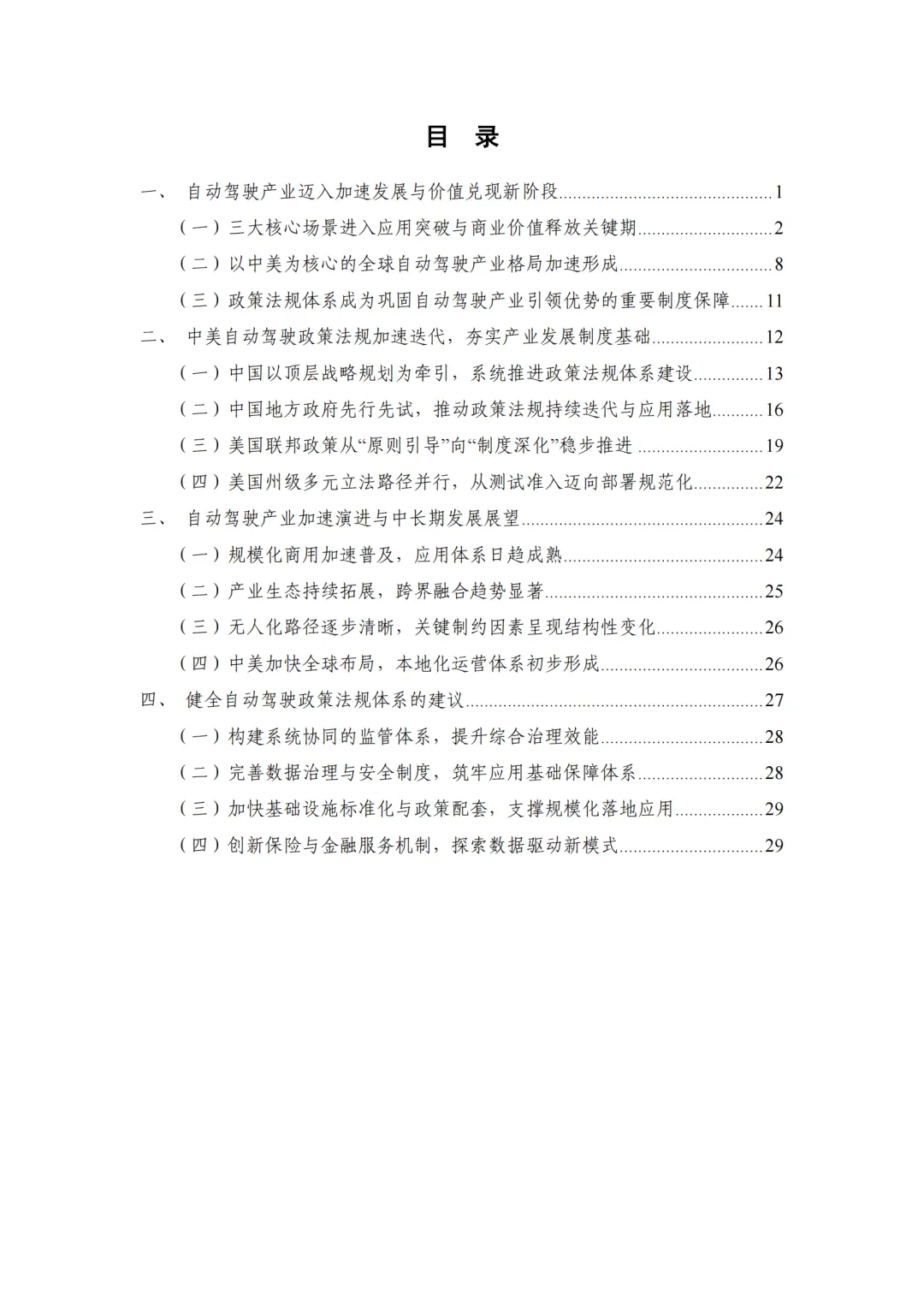 本报告核心围绕推动自动驾驶全场景落地,抢占全球科技发展制高点展开,解决四大核心问题:厘清中美自动驾驶产业发展格局与差异化路径,为企业全球化布局提供参考;