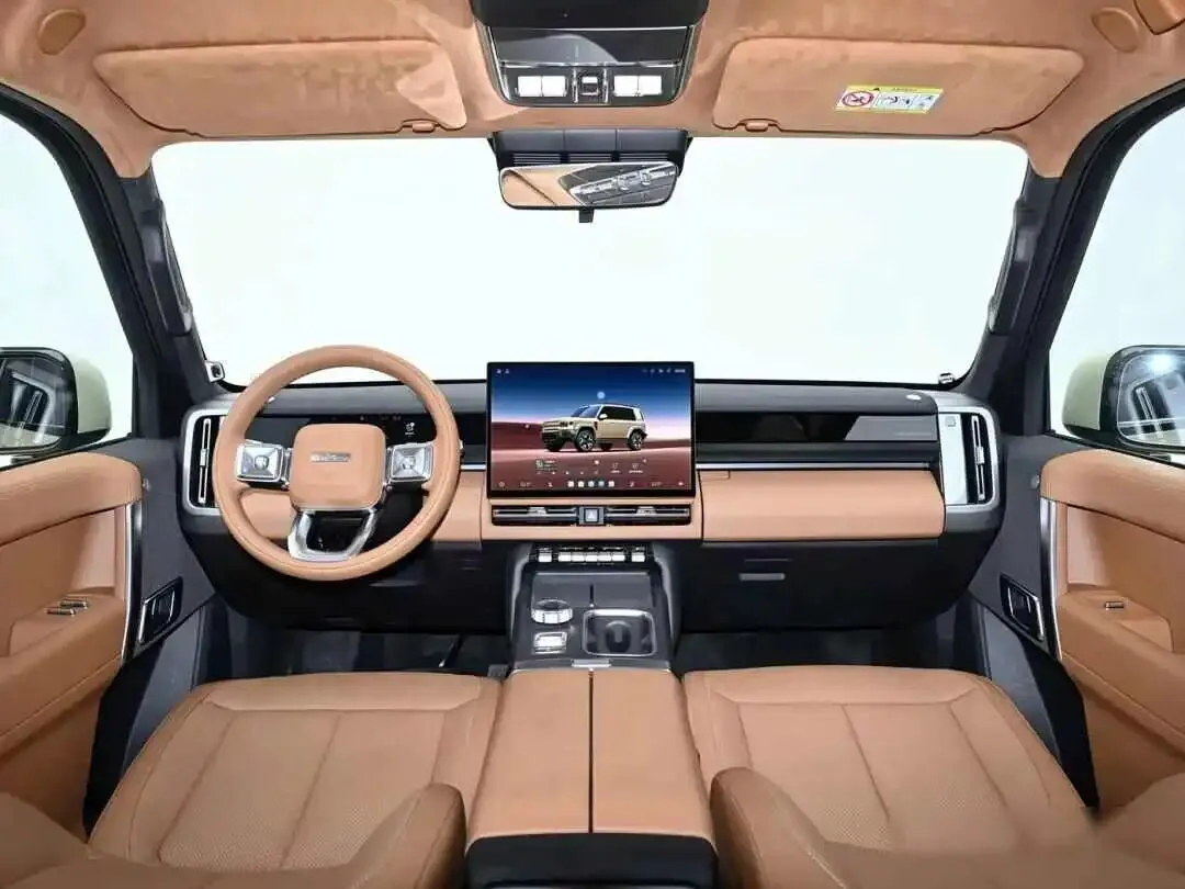 外观还是方盒子造型,但在细节上做了不少调整,窄格栅配上环形灯带,让前脸显得更稳重,车身长度接近五米,轴距超过两米九,轮子直接配了二十一英寸,这些设计不是为了好看,而是为后续改装和行驶稳定性打下基础,如果实际去越野,大轮圈和长轴距确实比小车更稳当。