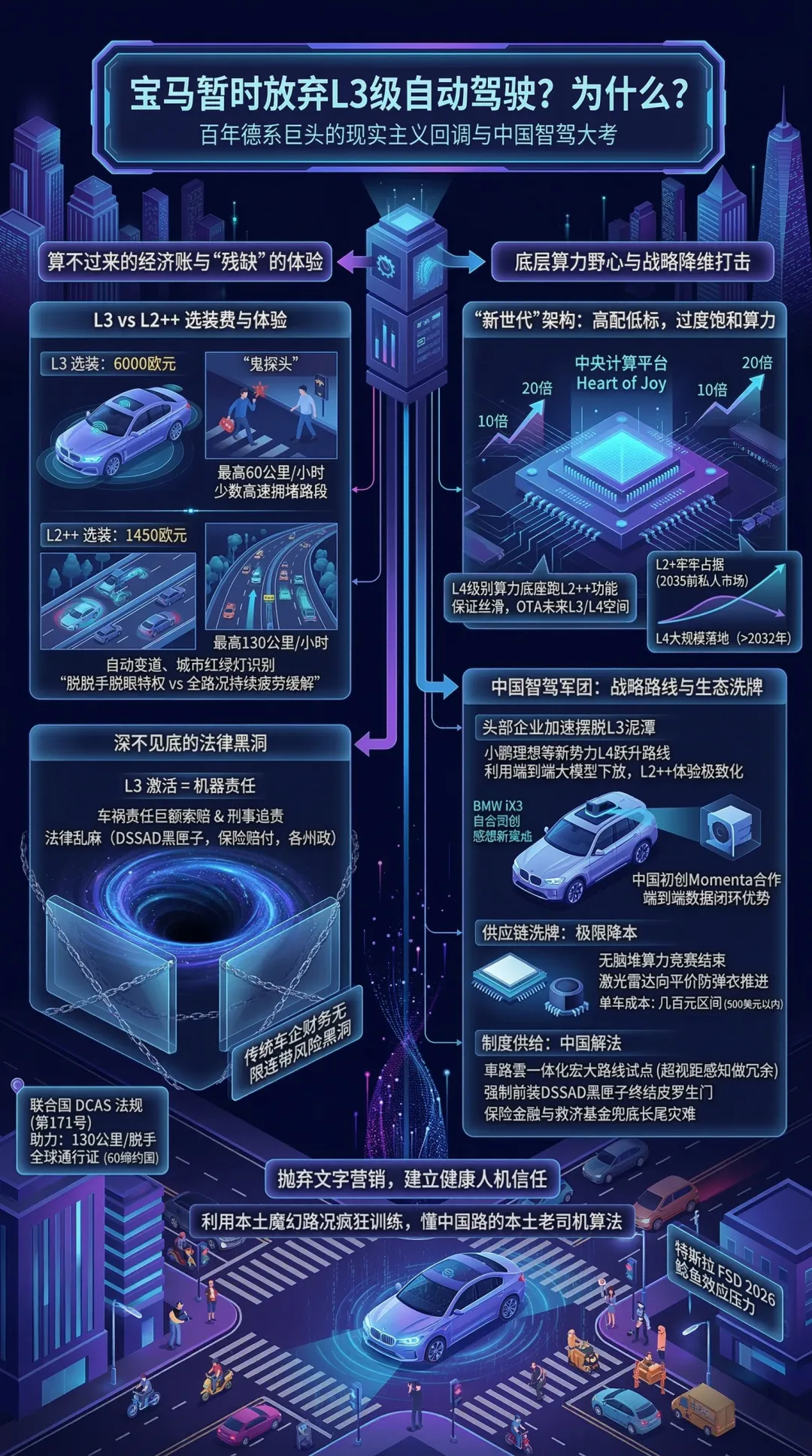 宝马的这次战略撤退,扯下了自动驾驶早期狂热的遮羞布。在未来的全球技术角逐中,谁能像新势力那样敢于探索L4的无人区,又能像百年巨头那样在成本、法规和用户效用之间掌握极致的商业平衡,谁才能在2026年这场终极生存战中笑到最后。