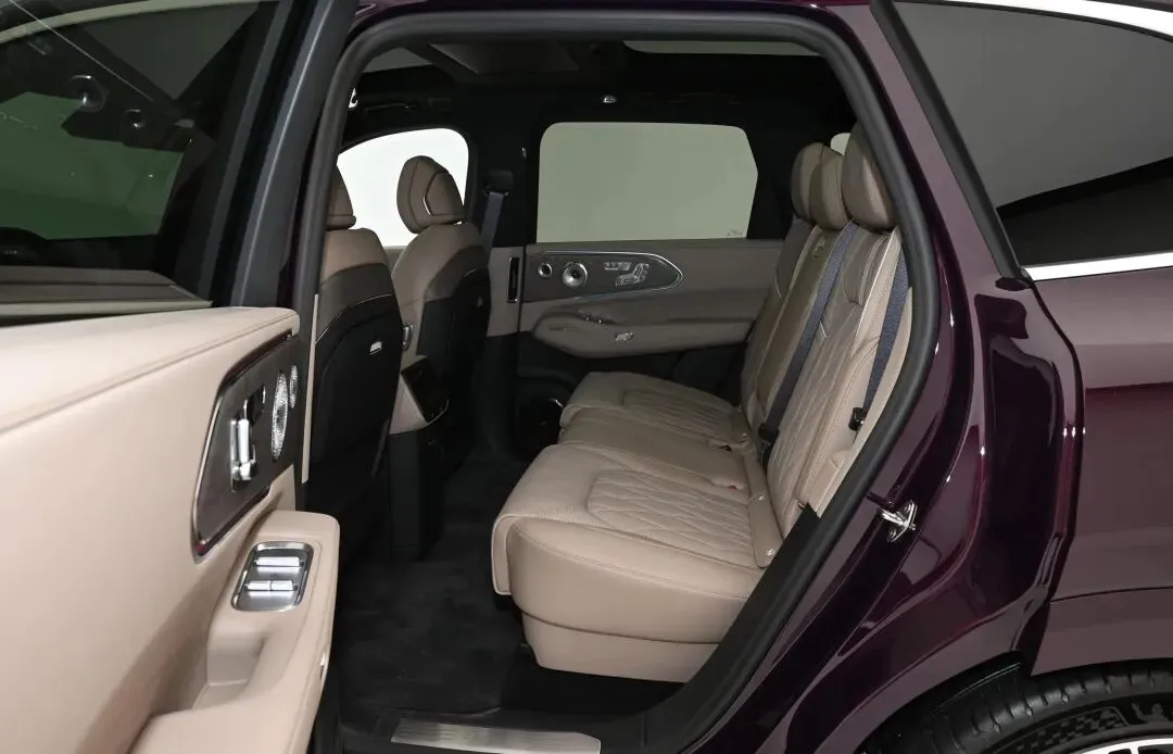 前脸那个格栅,真不是9X的缩小版。现场摸过展车,能动,呼吸式开合,面积有巴掌大。讲解员说是宾利以前的设计师做的,我听不太懂,但注意到它在低温时自动关小,下雨天自动收紧,不是花架子。车门也怪,表面看和车身一样平,但手一碰,边缘微微弹起,关门时“嗒”一声轻响,比L8那种软弹声更干脆。