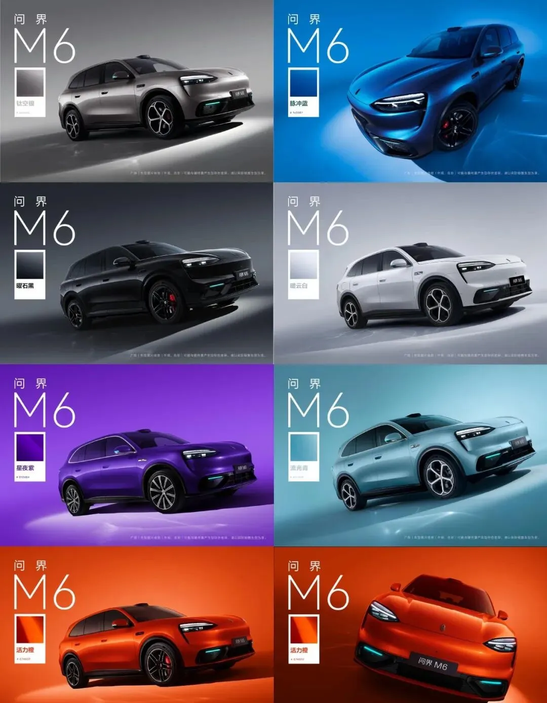 问界M6最近在朋友圈刷屏了,不是广告图,是实车。青色那款停在商场门口,阳光一照,车身泛蓝光,小蓝灯一闪一闪,不像车,像刚从科幻片里开出来的。我蹲那儿看了五分钟,旁边一对小情侣也在拍,男生说“这比Model Y顺眼”,女生回他“关键是它才25.98万起”。我没插话,但心里算了笔账——这个价,以前连M7低配都摸不到边。