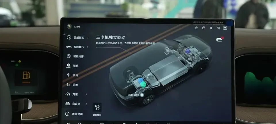 对一台全尺寸SUV来说,可调高度和预瞄能力,更多是为了兼顾舒适与通过性。配合前面的三电机技术,整套底盘系统的规格确实拉得很高。